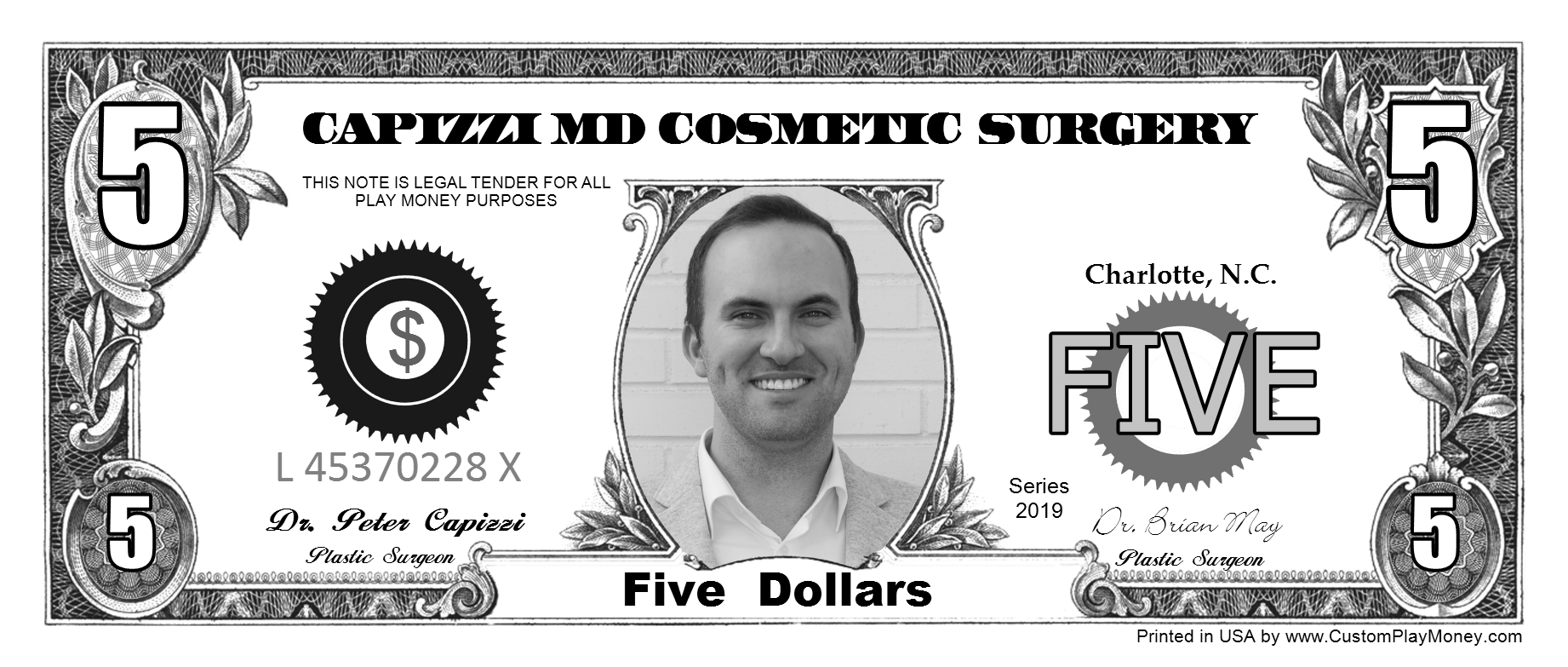 CustomPlayMoney.com will print and slice your order, and ship via USPS First Class, Priority or Express. One Day turn around on most orders.