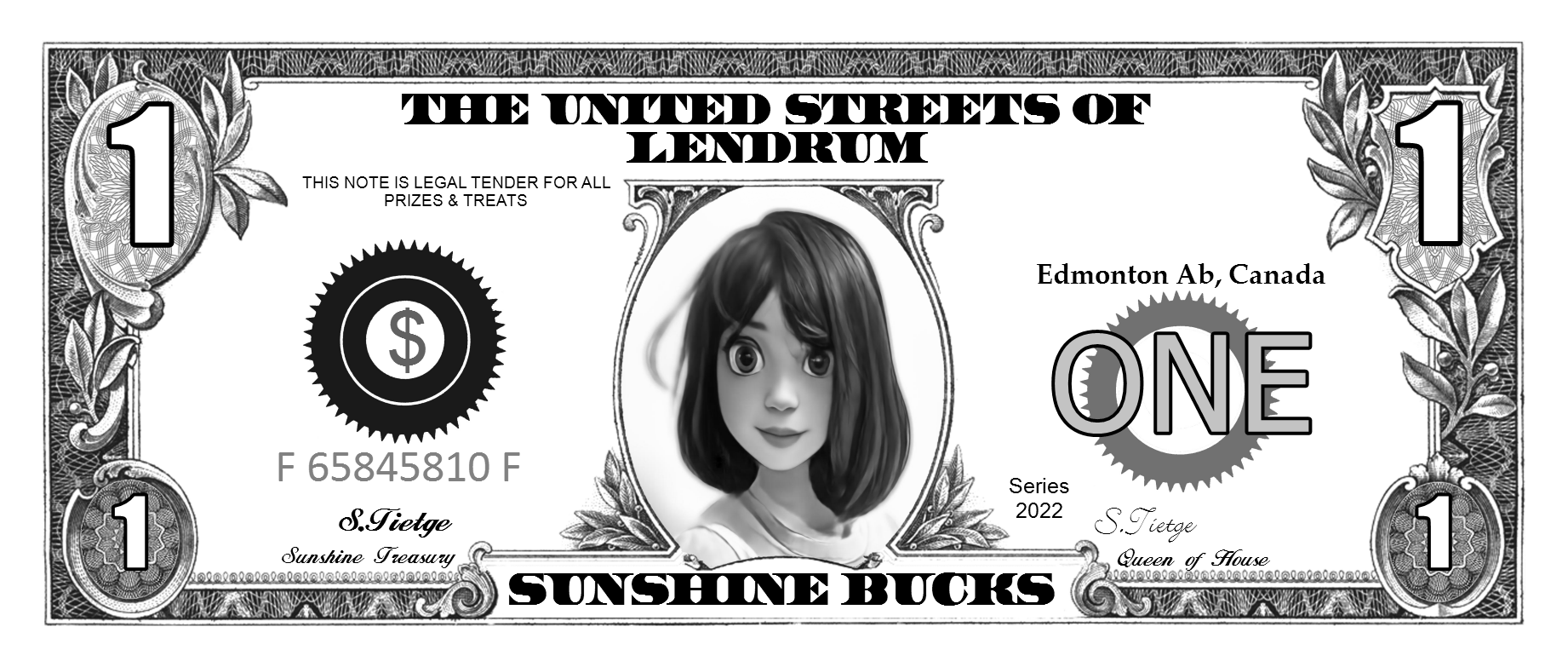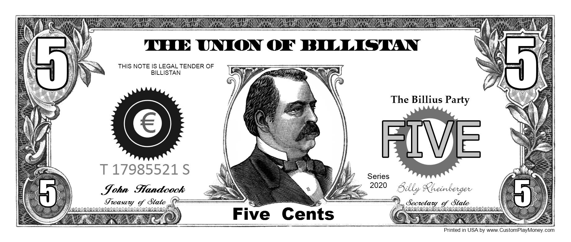 We support any world wide currency (or make your own up) for your play money items. Assigning the currency helps when placing denomination components on your item. When rendering the denomination amounts spelled out ... "One Hundred" for example, the proper denomination spelling will be automatically added to produce "One Hundred Dollars".
