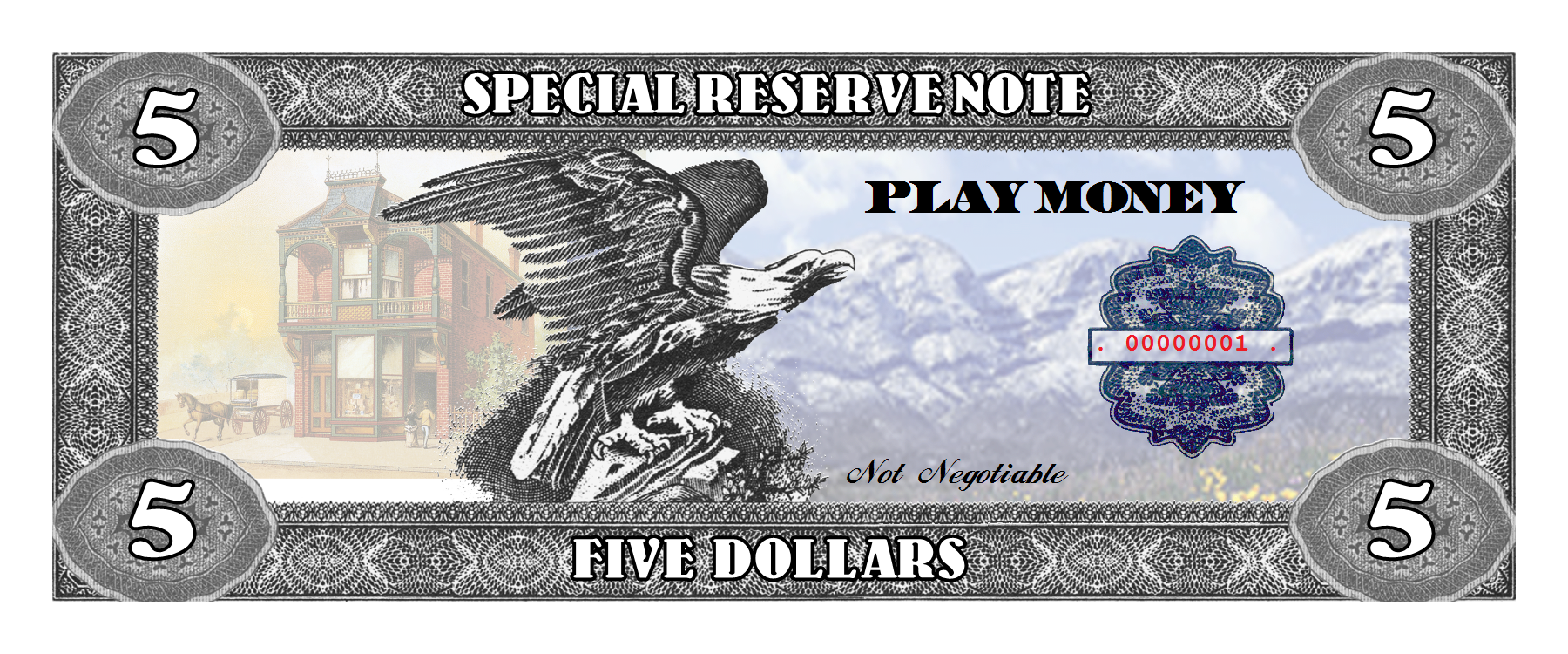 Design your own play money or have your in house graphic talent create your design. Simply upload and choose print options. You can still use our Layout wizard to add serial numbers, etc.