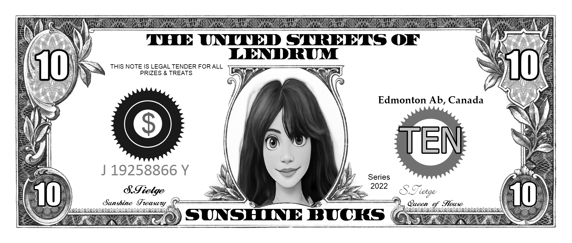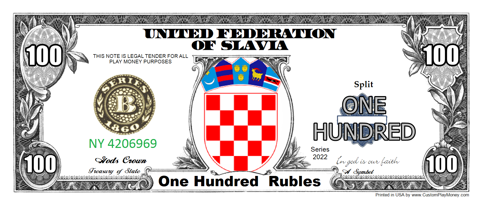 We support any world wide currency (or make your own up) for your play money items. Assigning the currency helps when placing denomination components on your item. When rendering the denomination amounts spelled out ... "One Hundred" for example, the proper denomination spelling will be automatically added to produce "One Hundred Dollars".